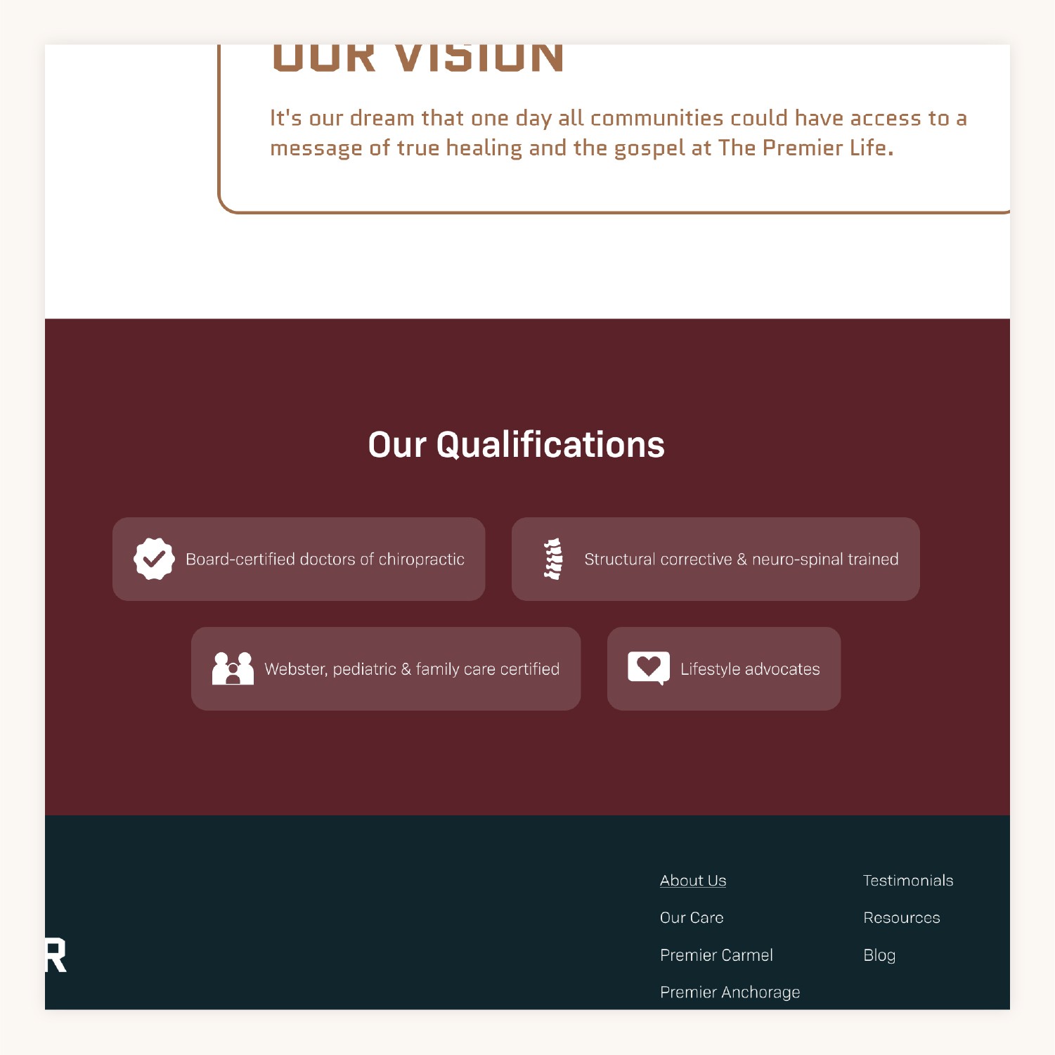The Premier Life provides comprehensive chiropractic with a focus on whole-person care, helping patients live healthier, more active lives. Coming off the heels of launching a new visual identity, the team came to Highmark to design and launch a new website. Highmark aimed to design a site that best reflected Premier's approach: welcoming, professional, and patient-centered.
